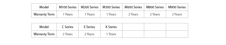 The warranty table shown below and the warranty term is start from the date of invoice receipt.
